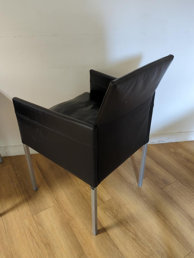 Fauteuil design Karl Friedrich Foster modèle Texas édition KFF recouvert de cuir noir, piètement en acier à section carrée, assise amovible. 86 x 53 x 53 cm. – Image 4