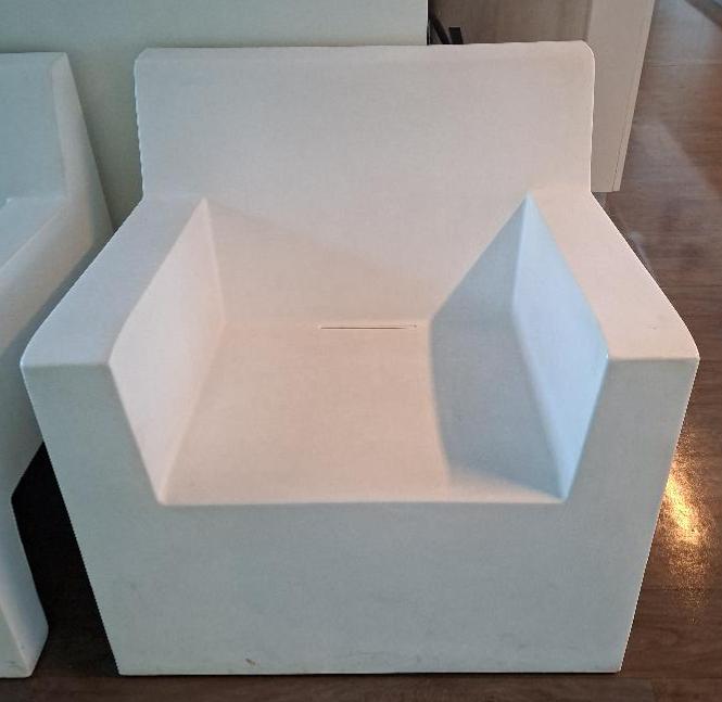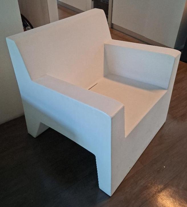 Fauteuil d’extérieur design Studio Vodom modèle Butaca Jut édition Vodom en polyéthylène blanc. 80 x 83 x 74 cm. 2 unités. Vendu à l’unité avec faculté de réunion. Localisation: 19 rue Neuve Tolbiac – 75013 Paris (restaurant)