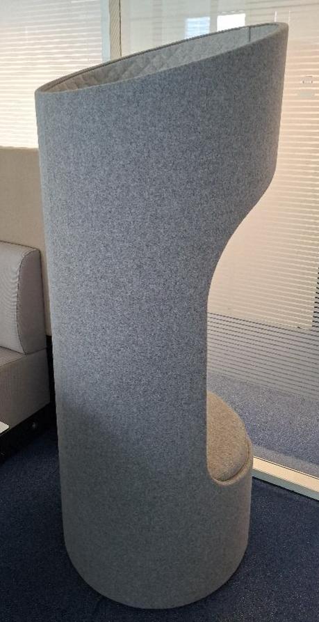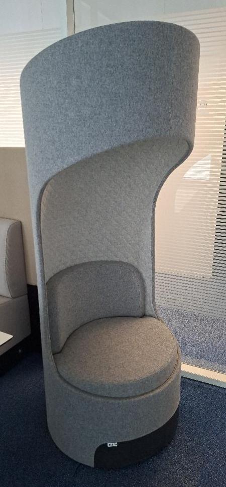 Fauteuil pivotant acoustique de marque Boss Design modèle Cega en feutrine grise. 170 x 68 cm. 3 unités. Vendu à l’unité avec faculté de réunion. Localisation: Tour Coeur Défense – 92400 Courbevoie (TA 26ème: 1 unité / TB5 4ème: 2 unités)