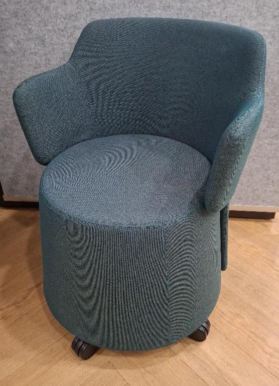 Fauteuil pivotant sur roulettes de marque OrangeBox modèle Skomer recouvert de tissu vert bouteille. 78 x 62 x 65 cm. Localisation: Tour Coeur Défense – 92400 Courbevoie (TA cafet)