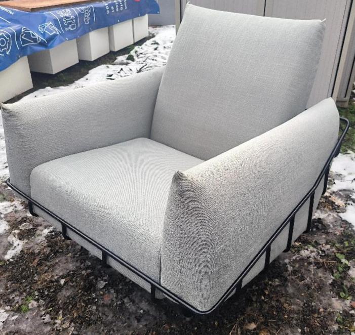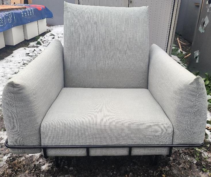 Fauteuil structure en acier noir, recouvert de coussins amovibles en tissu gris, accoudoirs et dossier déhoussable. Dim : 80 x 90 x 90 cm. 2 unités. Vendu à l’unité avec faculté de réunion. Localisation : 30 rue Beauregard 60440 Nanteuil-le-Haudouin