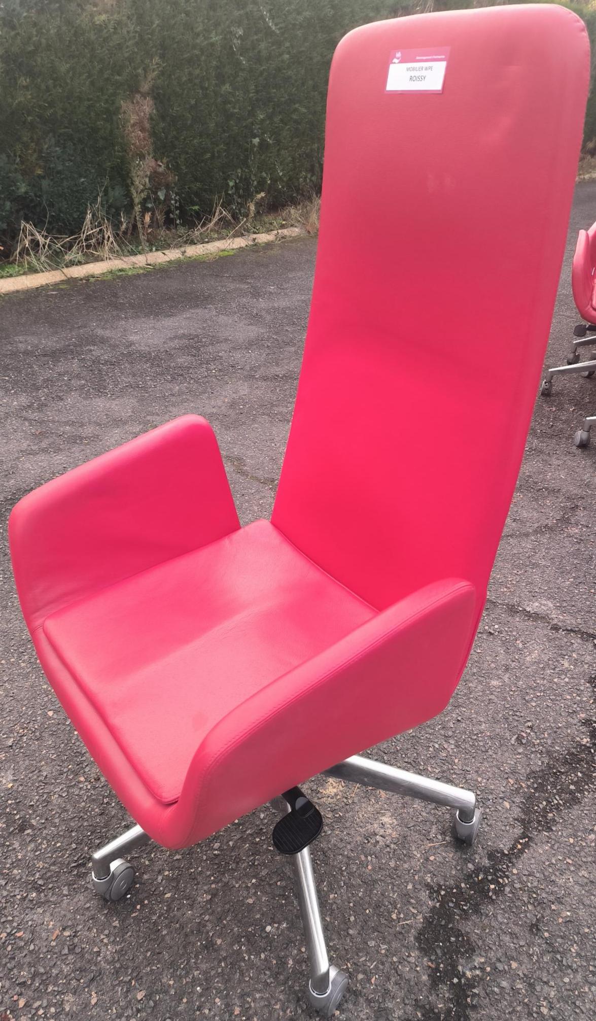 Fauteuil sur roulettes de marque Zanotta en cuir rouge, piètement chromé. Localisation: 30 rue Beauregard 60440 Nanteuil-le-Haudouin. – Image 3