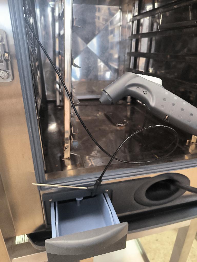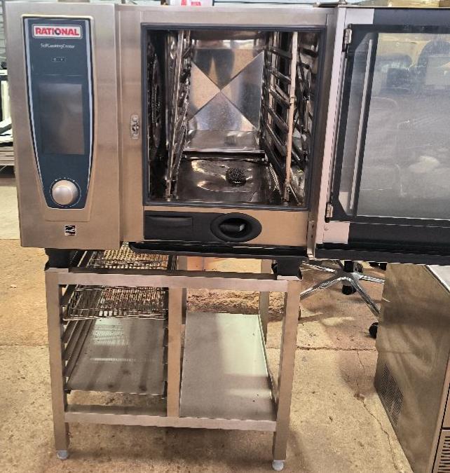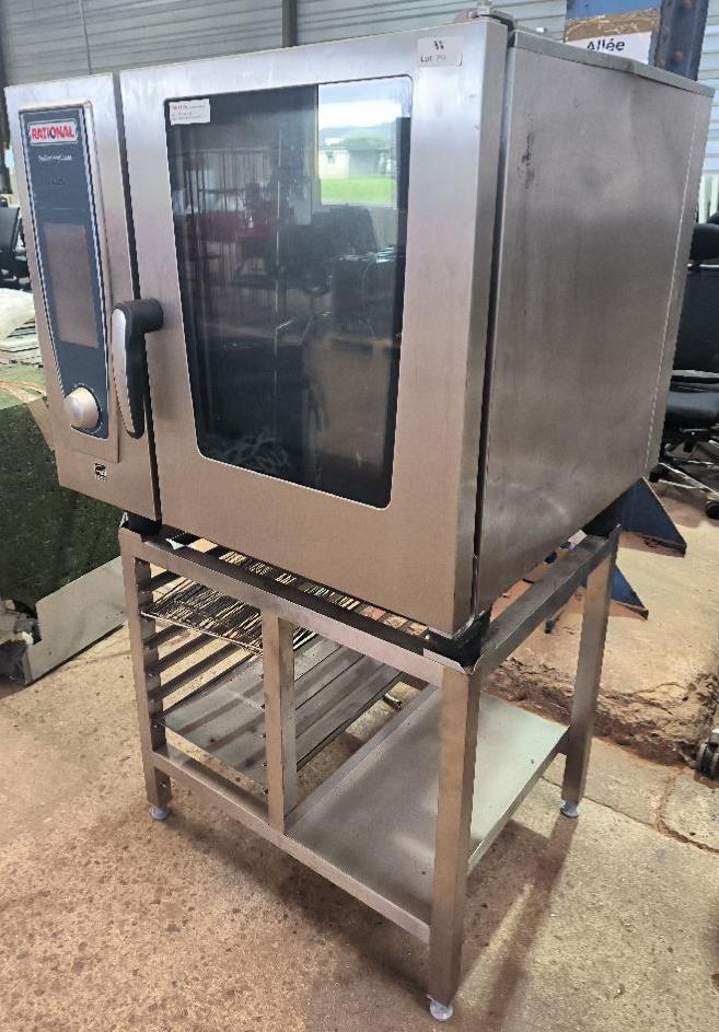 Four combiné de marque Rational modèle SCC WE 61 avec sonde de température et pistolet pulvérisateur sur son support en inox. Dim : 150 x 85 x 84 cm. Localisation : 34 avenue du Général Patton 02880 Crouy