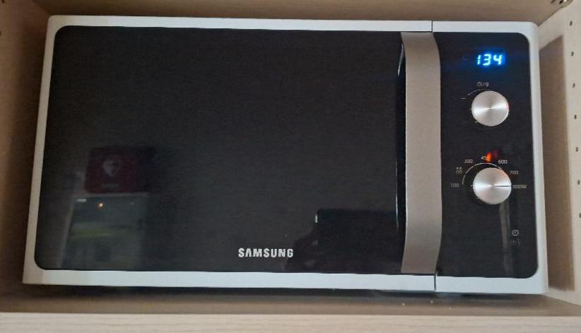 Four micro-ondes 800 watts de marque Samsung, blanc. 27 x 48 x 37 cm. (5ème). Localisation: 10 rue d’Arcueil – 94150 Rungis