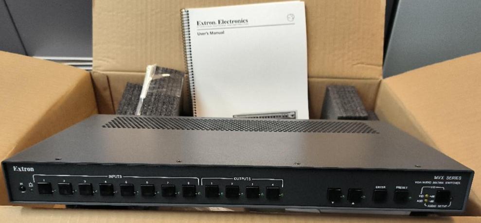 Grille de commutation 8×4 VGA et audio stéréo de marque Extron Electronics modèle MVX84 VGA A. Non testé. 2 unités. Vendu à l’unité avec faculté de réunion. Localisation : 30 rue Beauregard 60440 Nanteuil-le-Haudouin
