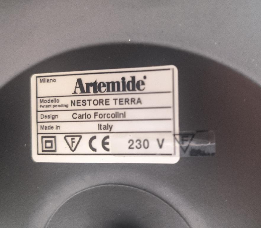 Lampadaire design Carlo Forcolini modèle Nestore Terra édition Artemide, structure en acier laqué de couleur noir, contrepoids sphérique. Hauteur réglable jusqu’à 270 cm, longueur du bras inclinable et pivotant : environ 165 cm, diamètre de la base : 37 cm. Localisation : 30 rue Beauregard – 60440 Nanteuil-le-Haudouin