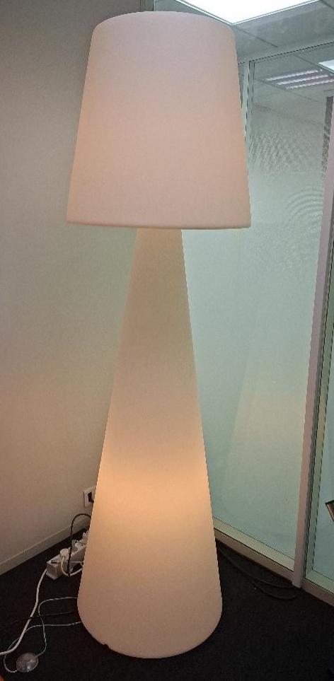 Lampe de parquet design Aksu Suardi modèle Molly èdition Slide en polyéthylène blanc. Hauteur : 182 cm. 1 unité. Localisation: entresol café codir