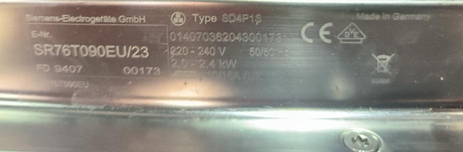 Lave-vaisselle encastrable de marque Siemens modèle SR76T090EU/23. Dim : 80 x 45 x 55 cm. Localisation : 34 avenue du Général Patton 02880 Crouy