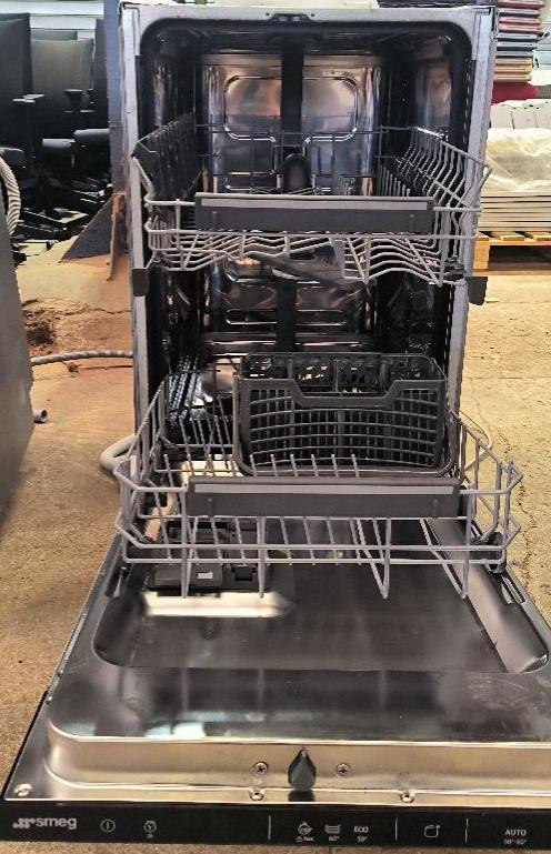Lave-vaisselle encastrable de marque Smeg. Dim : 82 x 45 x 55 cm. Localisation : 34 avenue du Général Patton 02880 Crouy