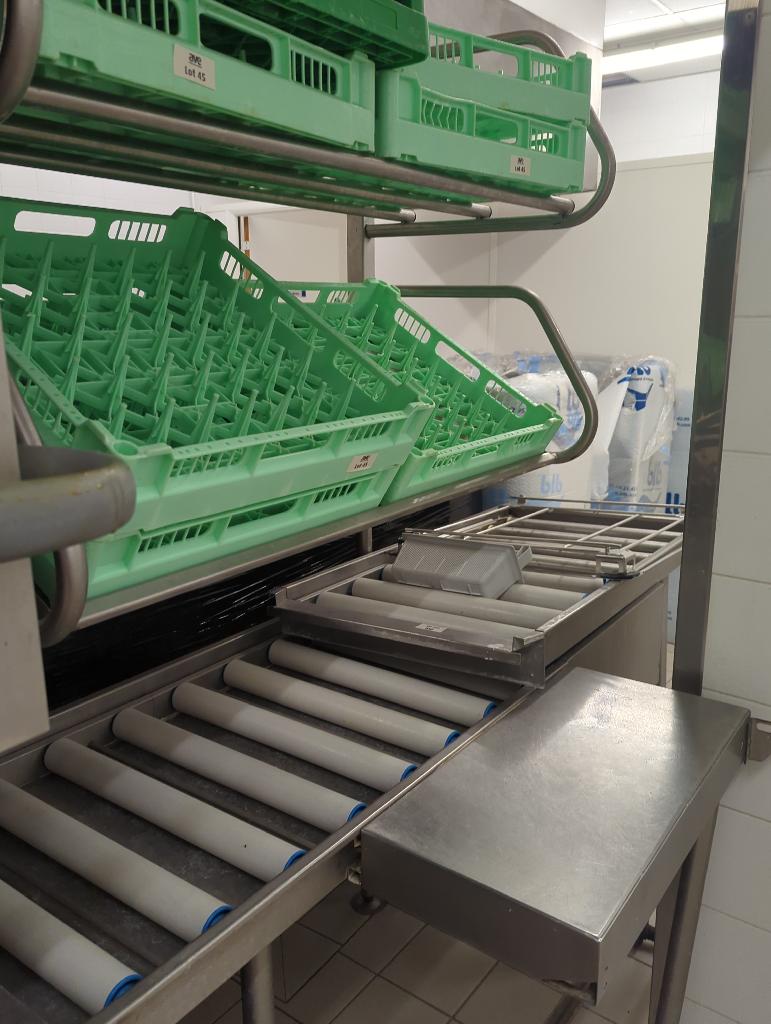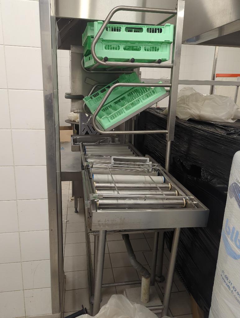 Lave vaisselle professionnel de marque Winterhalter avec son convoyeur à rouleaux. Localisation: Tour Coeur Défense – 92400 Courbevoie