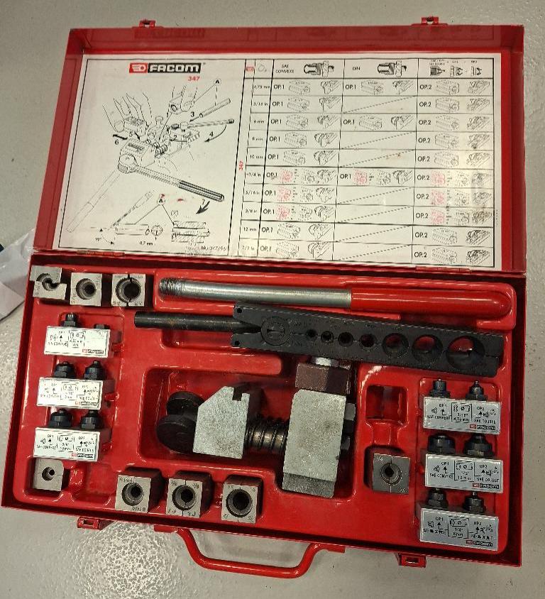 Lot de 3 cintreuses dont une de 66 cm et deux de 44 cm, avec mallette Facom contenant des raccords hydrauliques