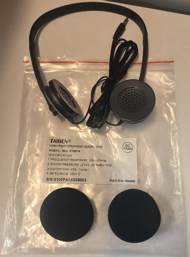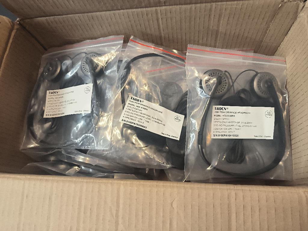 Lot de 31 casques stéréo de marque Taiden modèle HCS-5100PA. Non testé. Localisation : 30 rue Beauregard 60440 Nanteuil-le-Haudouin