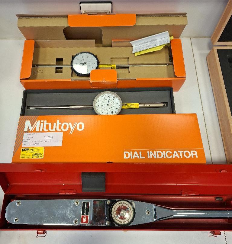 Lot de comparateurs à cadran, diverses marques dont Mitutoyo, Facom