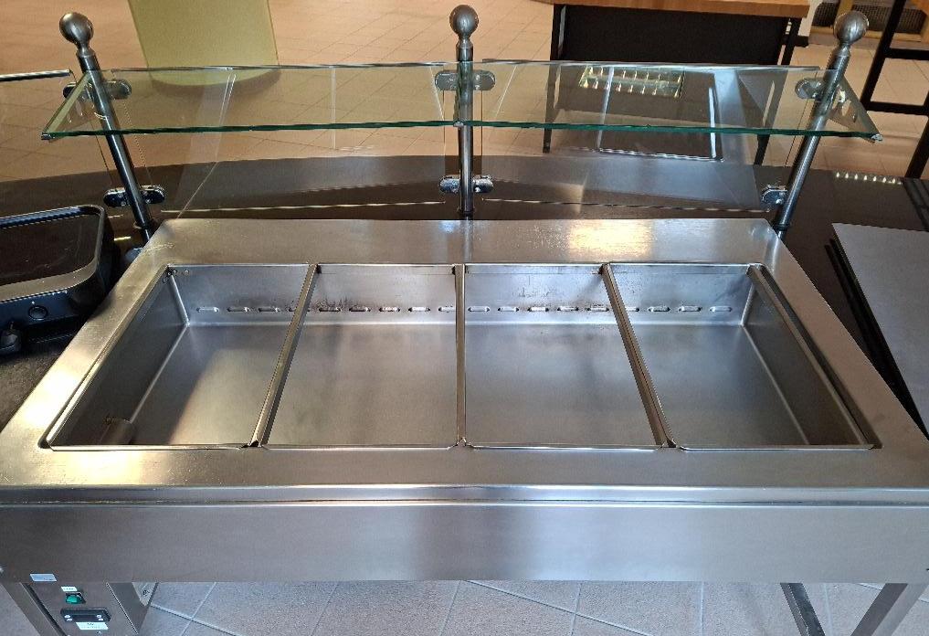 Meuble bain-marie en inox alimentaire à 4 compartiments. 83 x 147 x 80 cm. Localisation: cuisines