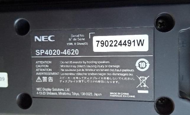 Moniteur 40 pouces de marque Nec modèle SP4020-4620 avec enceintes latérales sur support à roulettes. Localisation: 6ème étage salle 606