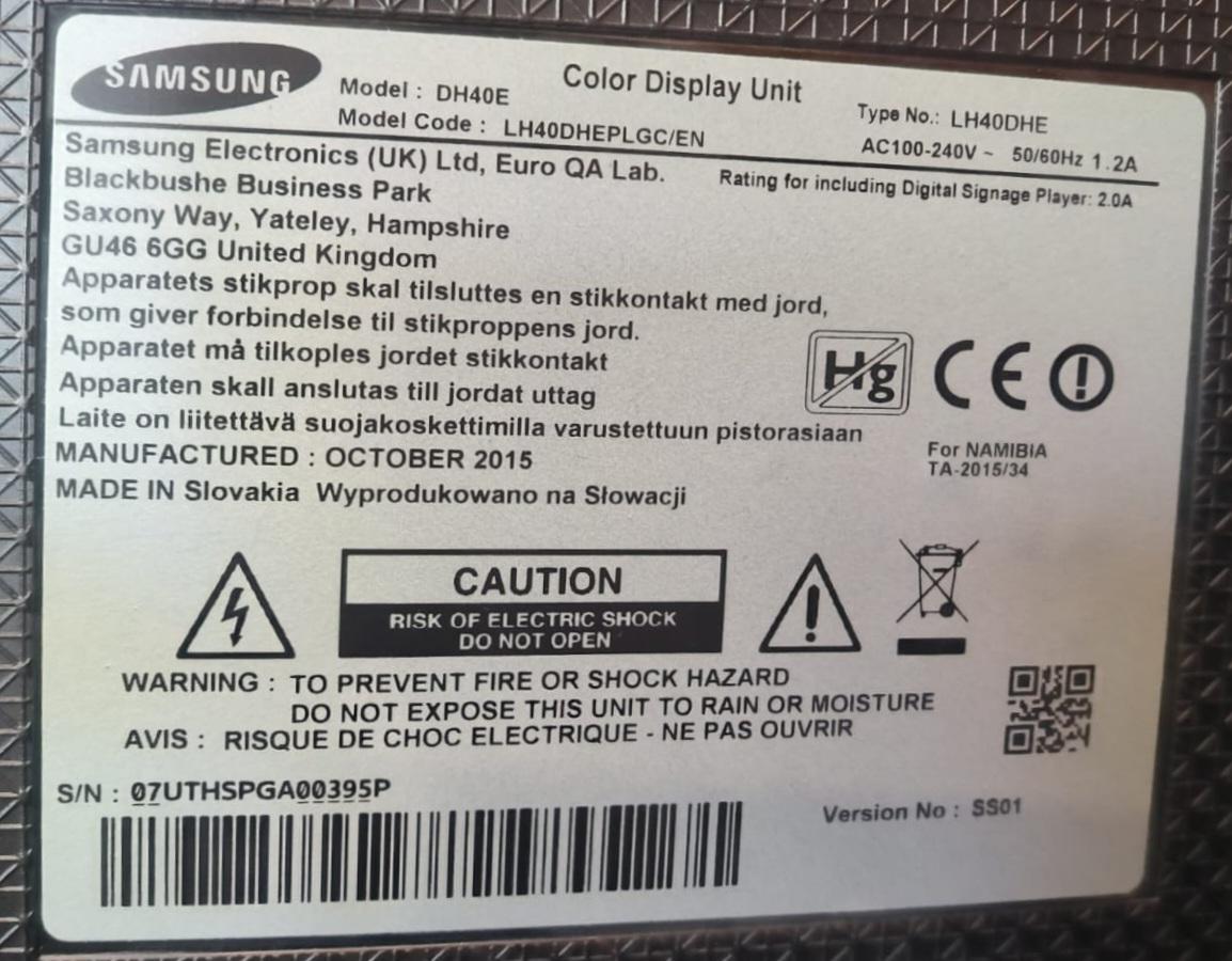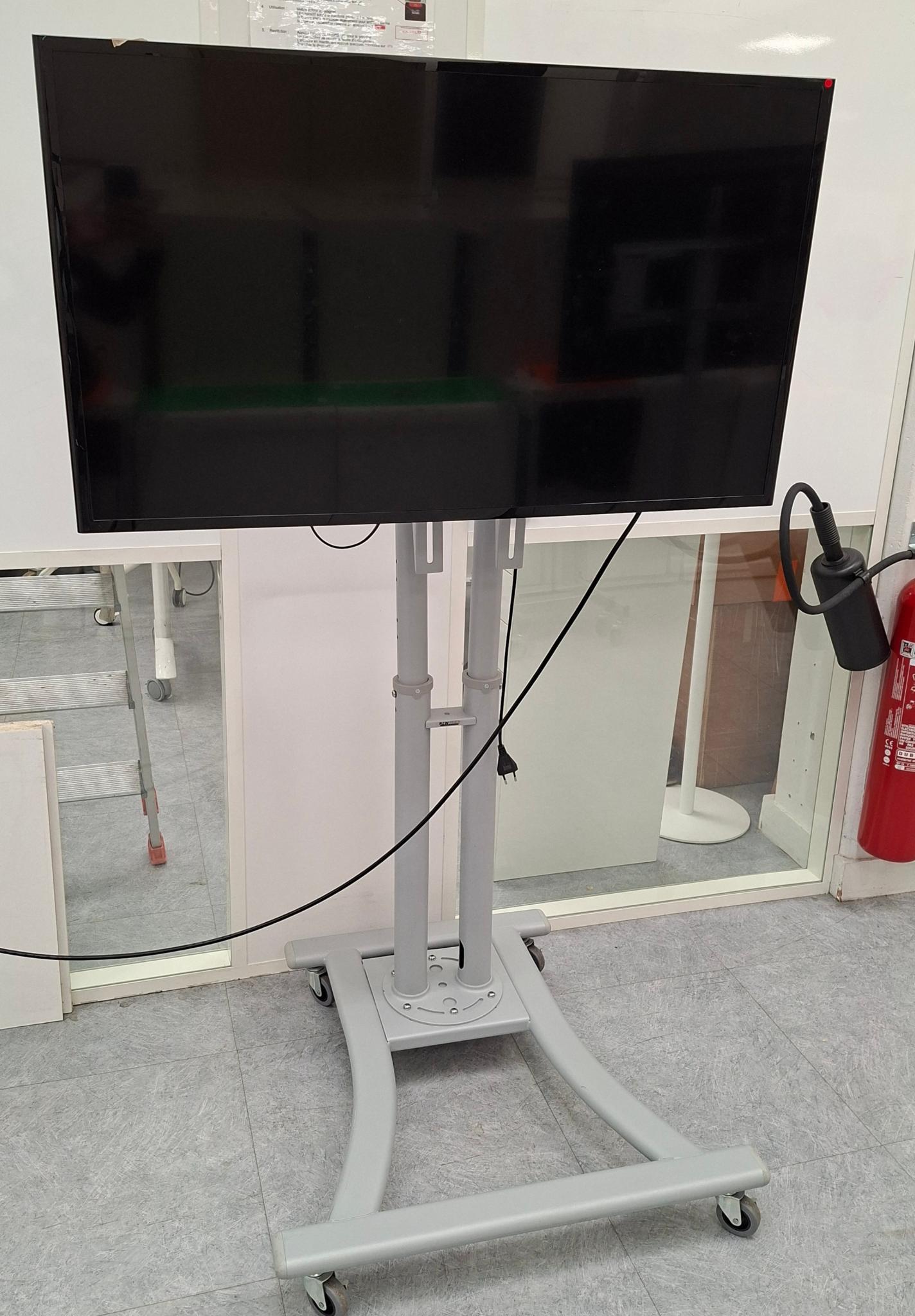Moniteur 40 pouces de marque Samsung modèle LH40DHEPLGC, sur support à roulettes. Localisation : 10 rue du Ballon – 93160 Noisy-Le-Grand