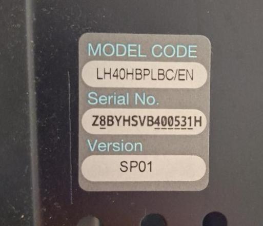 Moniteur 40 pouces de marque Samsung modèle LH40HBPLBC sur son support en métal. Localisation: Tour Coeur Défense – 92400 Courbevoie (TB4 0)