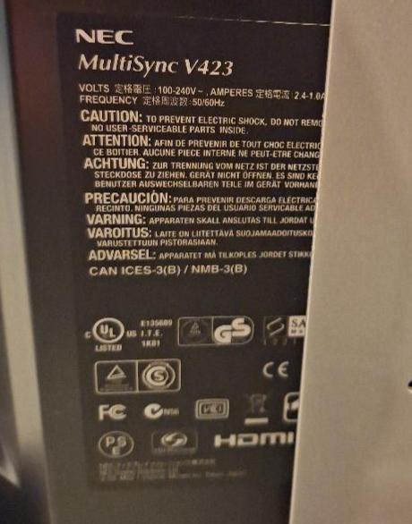 Moniteur 42 pouces de marque Nec modèle Multisync V423, sur pied. 2 unités. Localisation: auditorium