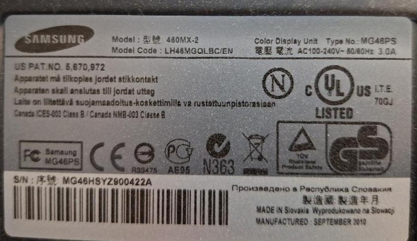 Moniteur 46 pouces de marque Samsung modèle 460MX. 20 unités. Vendu à l’unité avec faculté de réunion. Localisation: 30 rue Beauregard – 60440 Nanteuil-le-Haudouin