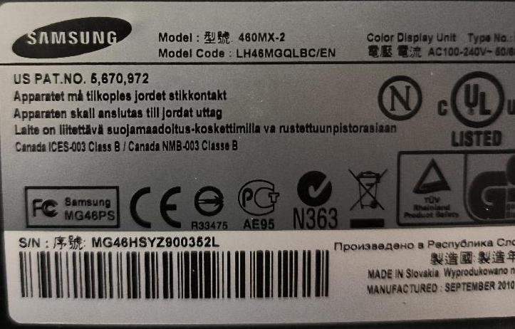 Moniteur 46 pouces de marque Samsung modèle 480MX-2 / LH46MGQLBC. Non testé. Localisation : 30 rue Beauregard 60440 Nanteuil-le-Haudouin