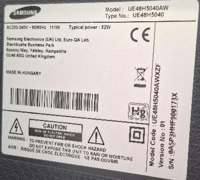 Moniteur 48 pouces de marque Samsung modèle UE48H5040. 5 unités. Vendu à l’unité avec faculté de réunion. Localisation: 26 rue Cambaceres – 75008 Paris. (6eme: 2 unités (607, 602), 2eme: 1 unité, 4eme: 2 unités)