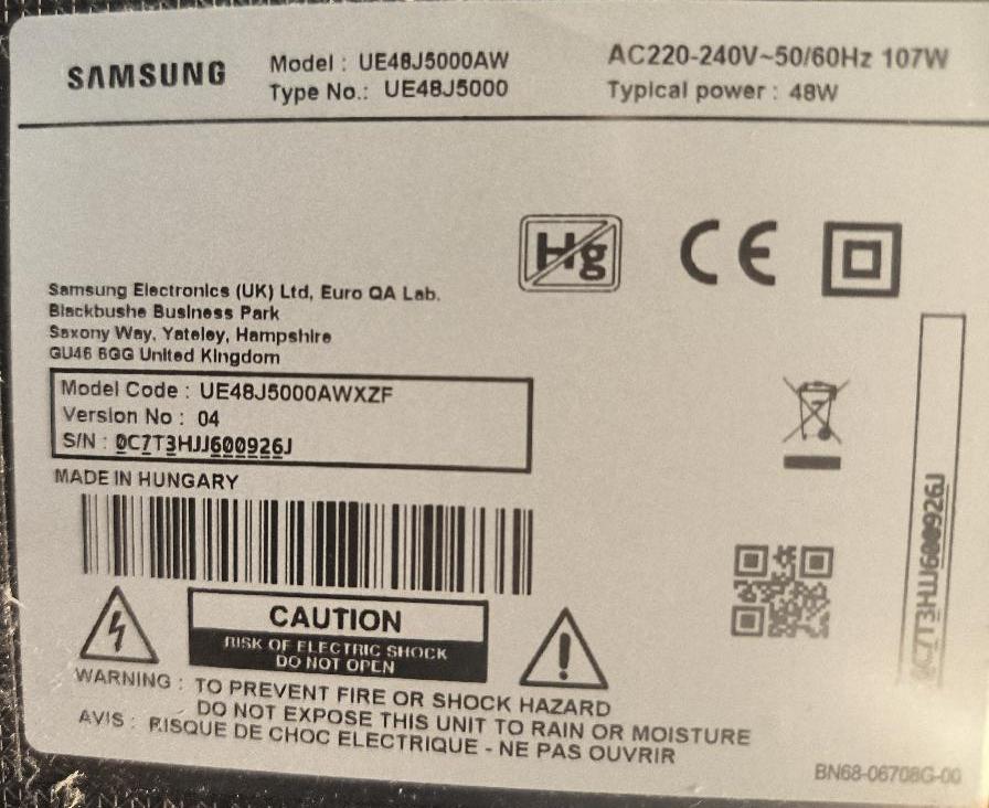 Moniteur 48 pouces de marque Samsung modèle UE48J5000 / UE48J5000AW. Non testé. 3 unités. Vendu à l’unité avec faculté de réunion. Localisation : 30 rue Beauregard 60440 Nanteuil-le-Haudouin