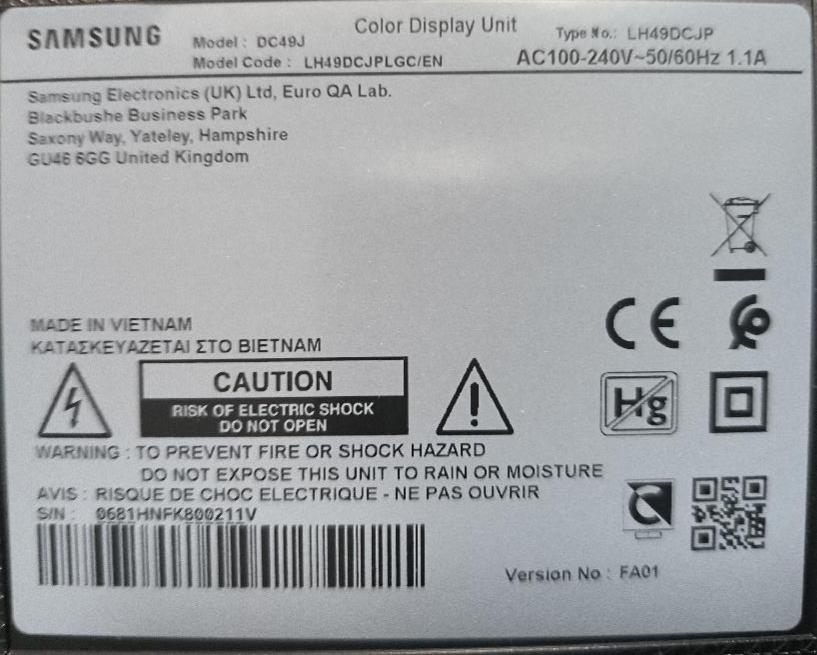 Moniteur 49 pouces de marque Samsung modèle DC49J / LH49DCJPLGC. Non testé. 6 unités. Vendu à l’unité avec faculté de réunion. Localisation : 30 rue Beauregard 60440 Nanteuil-le-Haudouin
