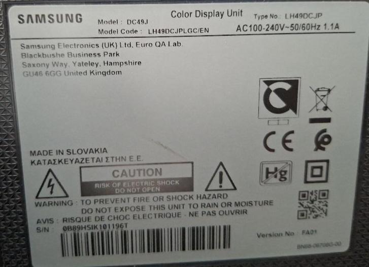 Moniteur 49 pouces Samsung modèle DC49J. 10 unités. Vendu à l’unité avec faculté de réunion. Localisation: 30 rue Beauregard – 60440 Nanteuil-le-Haudouin