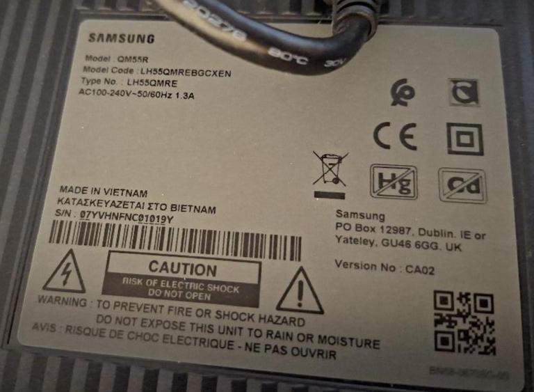 Moniteur 55 pouces de marque Samsung modèle LH55QMRE sur son support en métal. 3 unités. Localisation: 4ème zone bleue