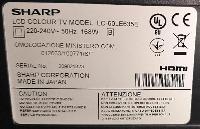 Moniteur 60 pouces de marque Sharp modèle LC-60LE635E. Non testé. Localisation : 30 rue Beauregard 60440 Nanteuil-le-Haudouin