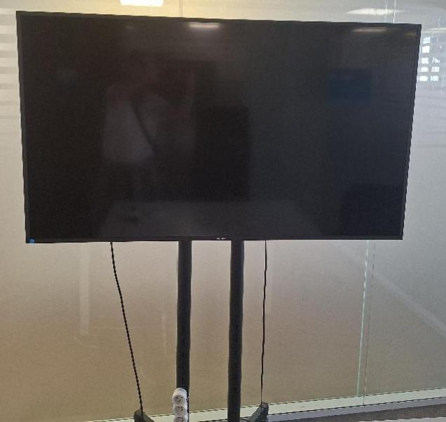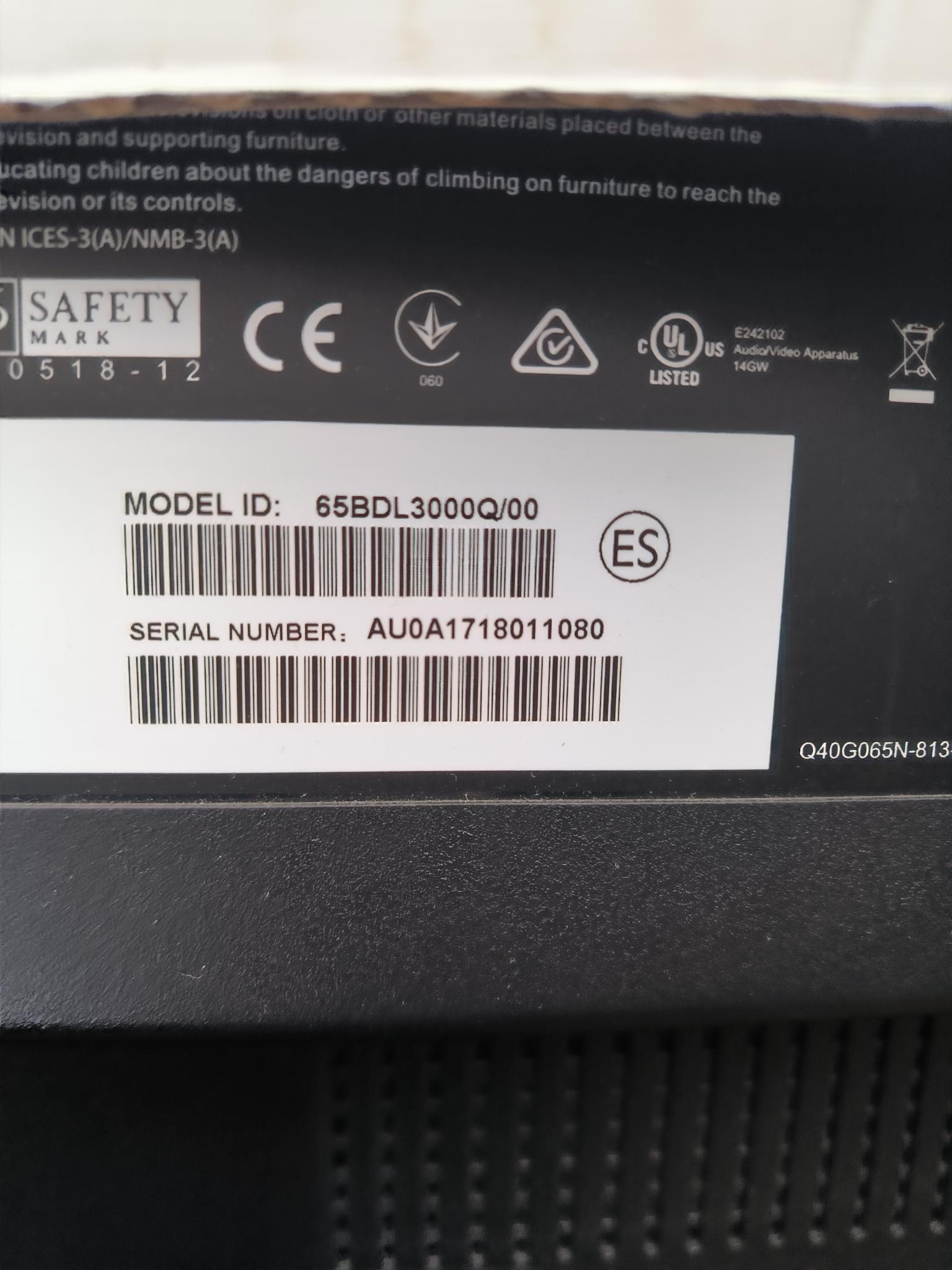 Moniteur 65 pouces de marque Philips modèle 65BDL3000Q/00, sur support à roulettes. Localisation: 30 rue Beauregard 60440 Nanteuil-le-Haudouin