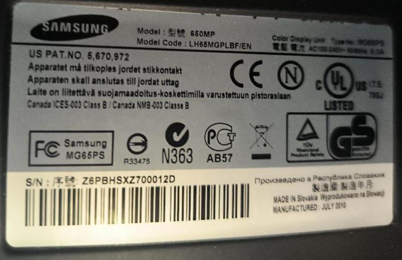 Moniteur 65 pouces de marque Samsung modèle 650MP / LH65MGPLBF. Non testé. Localisation : 30 rue Beauregard 60440 Nanteuil-le-Haudouin