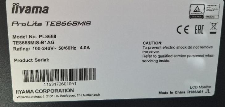 Moniteur 86 pouces de marque Iiyama modèle Prolite TE8668MIS. 1 unité. Localisation: 30 rue Beauregard - 60440 Nanteuil-le-Haudouin