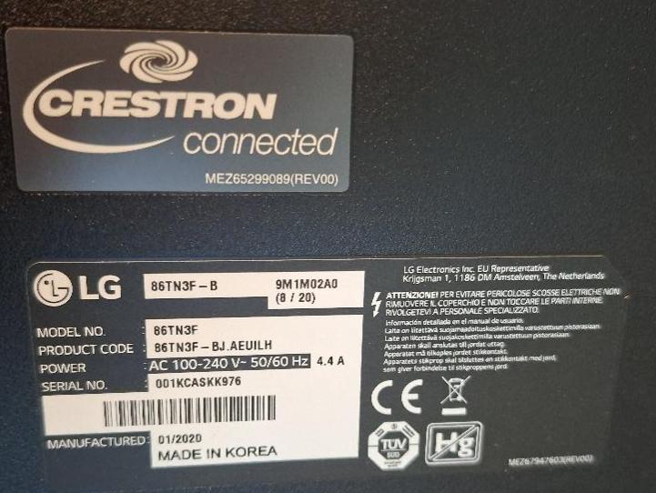 Moniteur 86 pouces de marque LG modèle 86TN3F-B. 1 unité. Localisation: 30 rue Beauregard – 60440 Nanteuil-le-Haudouin