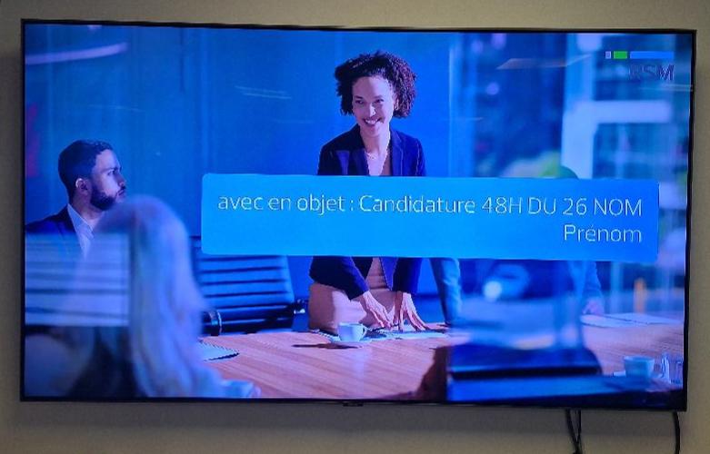 Moniteur de marque Samsung diagonale 163 cm (65 pouces ?). Localisation: 26 rue Cambaceres – 75008 Paris. (1er cafet)
