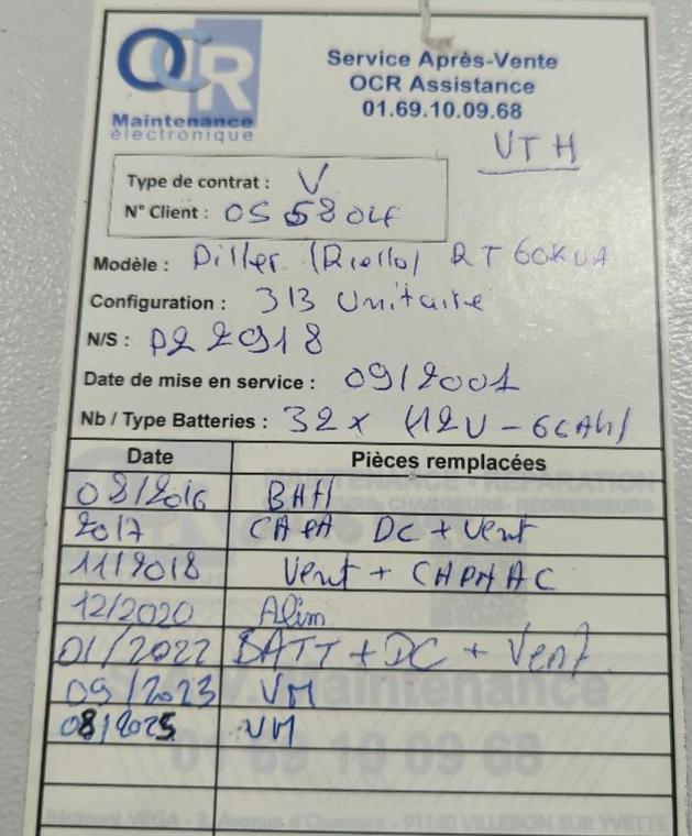 Onduleur 60 Kva de marque Riello modèle Piller RT60 et batteries de marque Vision modèle CP1250F-X . 180 x 163 x 74 cm (rdj)