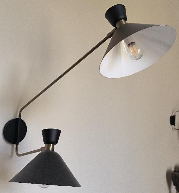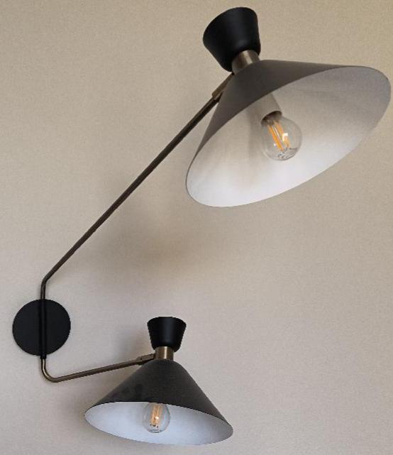Paire d’appliques à 2 abat-jours en métal de couleur noir, blanc et doré. Dim : 60 x 72 cm. 4 unités. Vendu à l’unité avec faculté de réunion. Localisation: BLB, 3 rue de la Fossé aux Leux – 91700 Sainte Geneviève des Bois