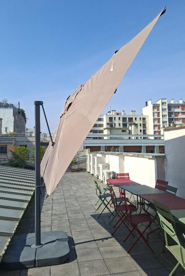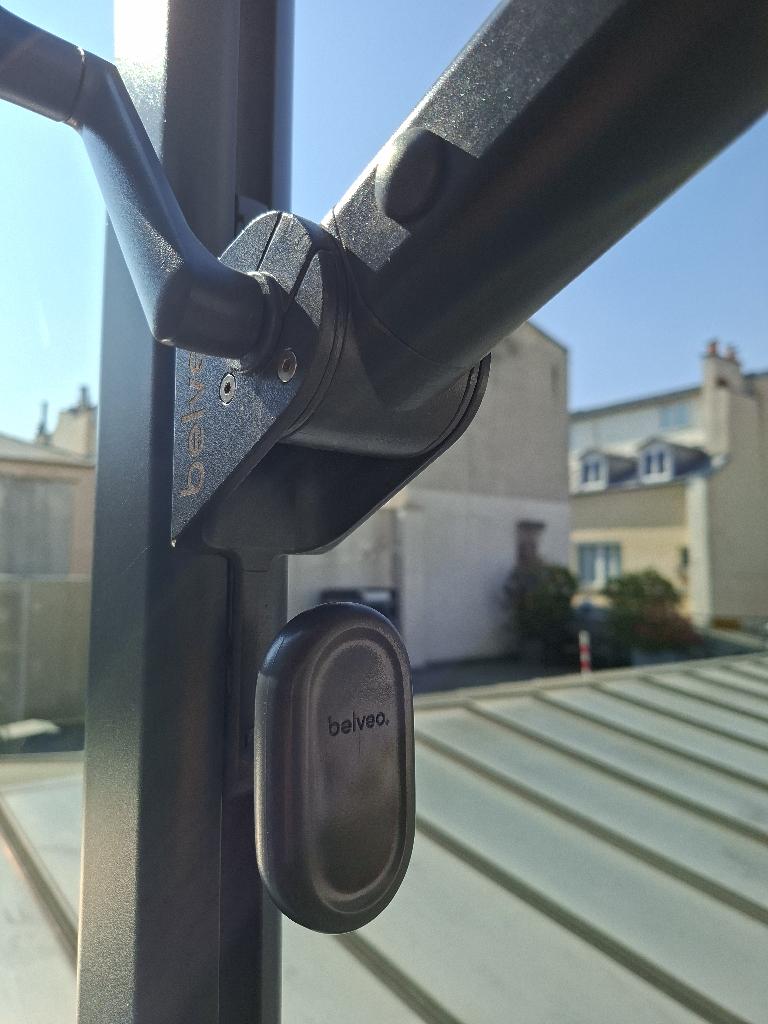 Parasol déporté de marque Belvéo modèle Sofy, toile de couleur beige foncé. Dimension déplié 3 x 3 m. Localisation: 30 rue Beauregard - 60440 Nanteuil-Le-Haudouin. – Image 4