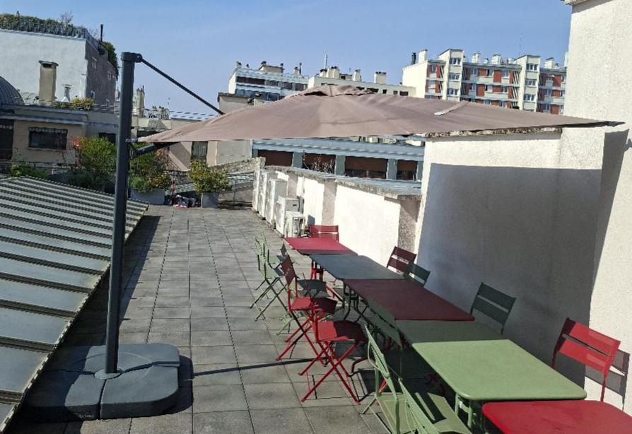 • Canapé acoustique à haut dossier formant alcove de marque Buzzy Space recouvert de feutrine vert anis. 188 x 200 x 115 cm.  Localisation : 10 rue Petit - 75019 Paris (1er)