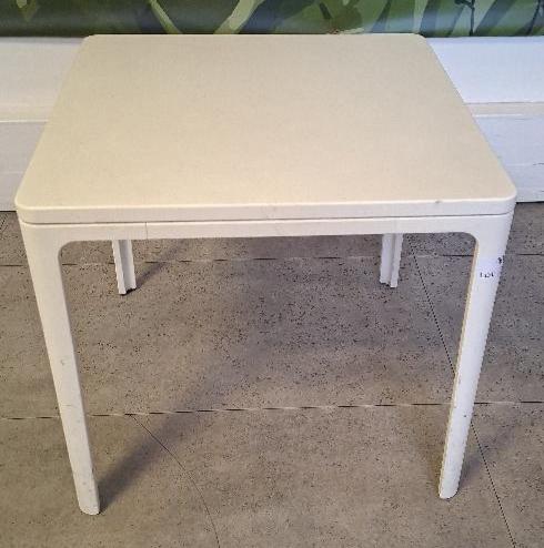 Petite table d’appoint design Jasper Morrison modèle Plate Table édition Vitra, plateau carré à bords arrondis en bois stratifié blanc, piétement en acier laqué blanc. 40 x 40 x 37 cm. Localisation: 26 rue Cambaceres – 75008 Paris. (2eme étage)