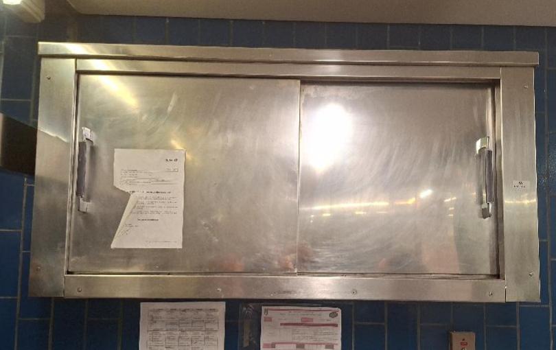 Placard mural ouvrant à 2 portes en inox. 75 x 150 x 38 cm. Localisation: cuisines