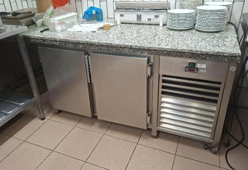 Placard réfrigéré en inox avec dessus en granit ouvrant à 2 portes. 82 x 222 x 83 cm. Localisation: cuisines