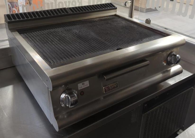 Plancha rainurée 2 feux de marque Baron. 37 x 80 x 72 cm. (cuisine)