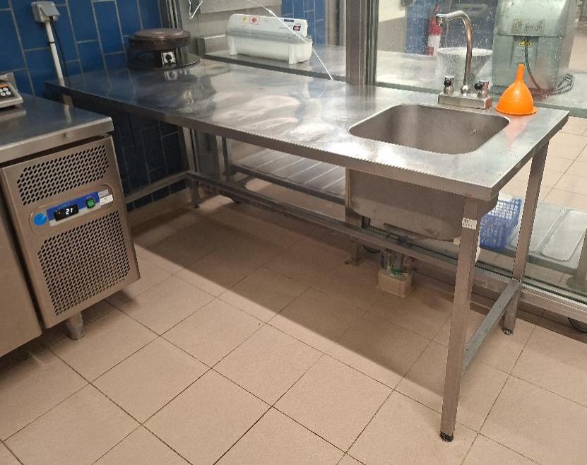 Plonge 1 bac en inox alimentaire. 90 x 200 x 70 cm. Localisation: cuisines