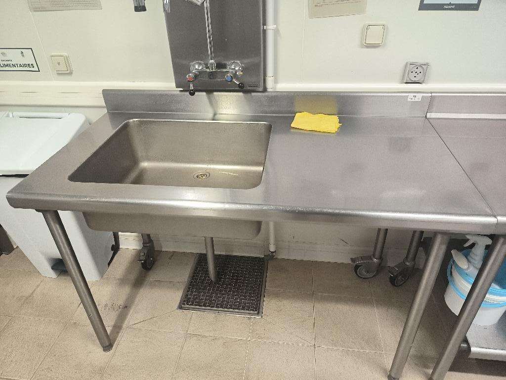 Plonge adossée 1 bac, 2 roulettes à l’arrière, en inox alimentaire avec douchette de marque Tournus Equipement. 90 x 140 x 70 cm. (cuisine)