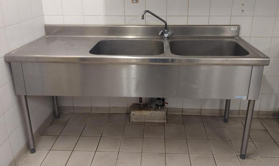 Plonge adossée 2 bacs en inox alimentaire. 101 x 190 x 70 cm. Localisation: Tour Coeur Défense - 92400 Courbevoie