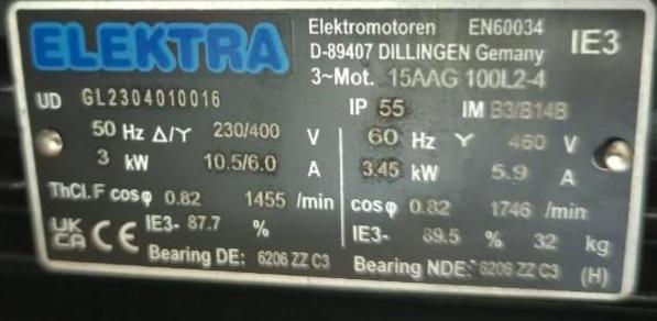 Pompe de marque Elektra modèle IE3. (rdj ML037)