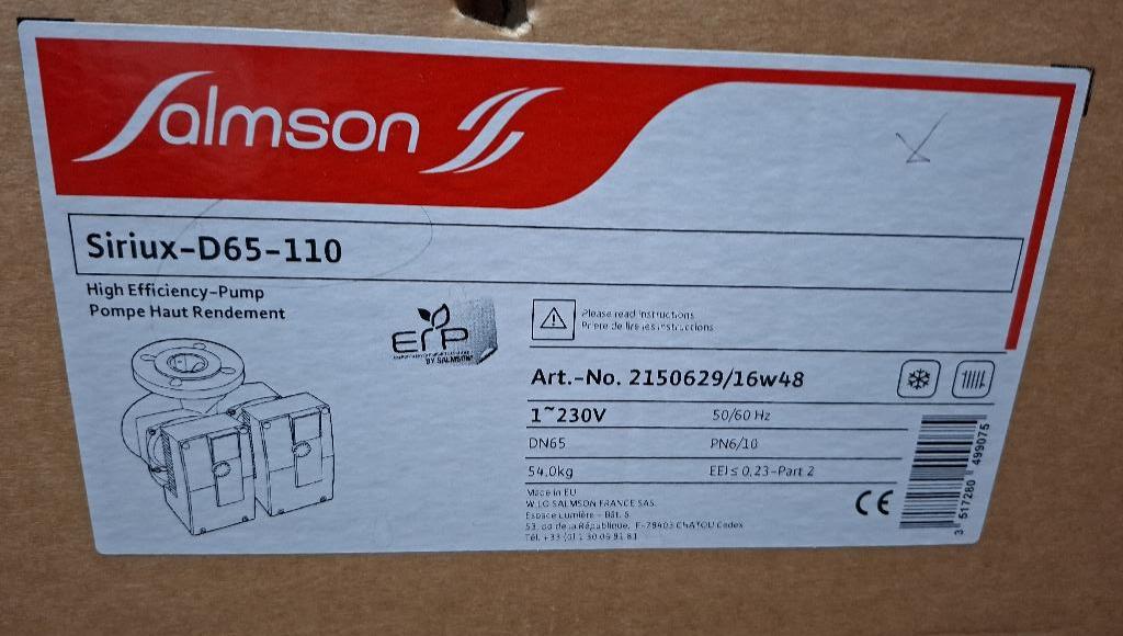 Pompe en ligne double de marque Salmson modèle Siriux D65-110. Neuve dans son emballage d'origine. (2ème local technique GF2-CTA2) – Image 2