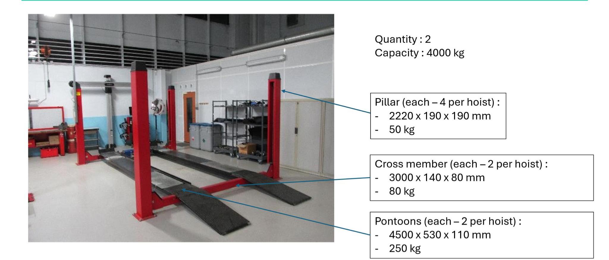 Pont élévateur 4 colonnes (voir détails sur photos), démonté.