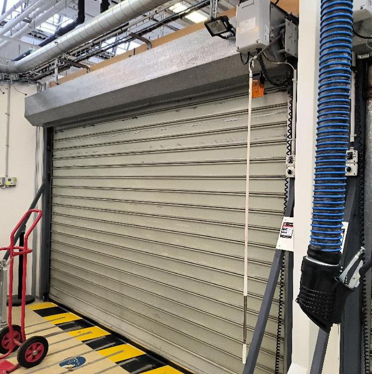 Porte électrique à rideau de marque DEA. Dim: 250 x 380 cm. 2 unités. Vendu à l’unité avec faculté de réunion. (RDC bât H HL114)